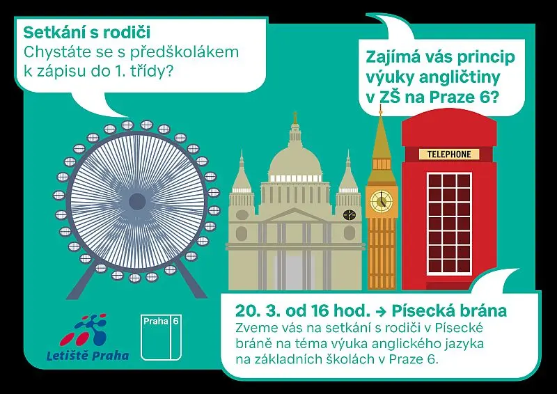 Zveřejňujeme pozvánku na besedu s rodiči před zahájením zápisu do prvních tříd na téma výuka anglického jazyka na základních školách Prahy 6, které proběhne  20.3.2023 v čase 16:00-18:00  v Písecké bráně.