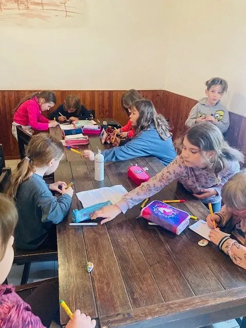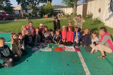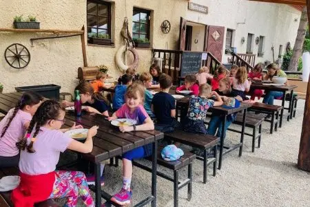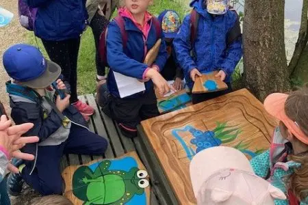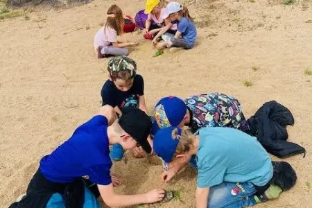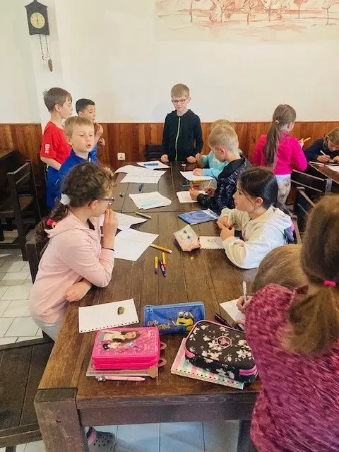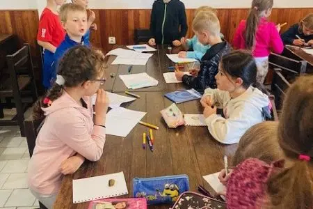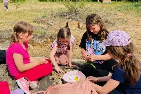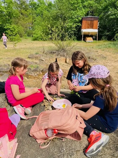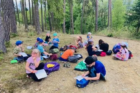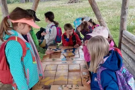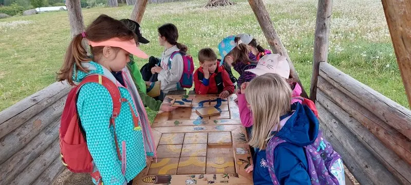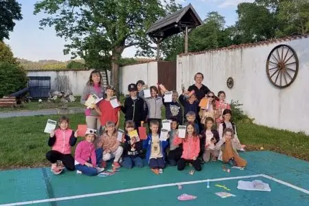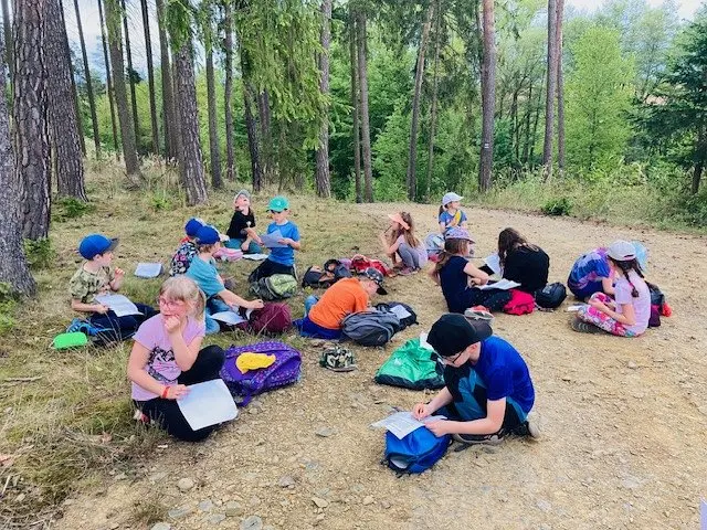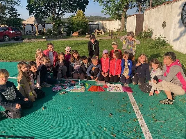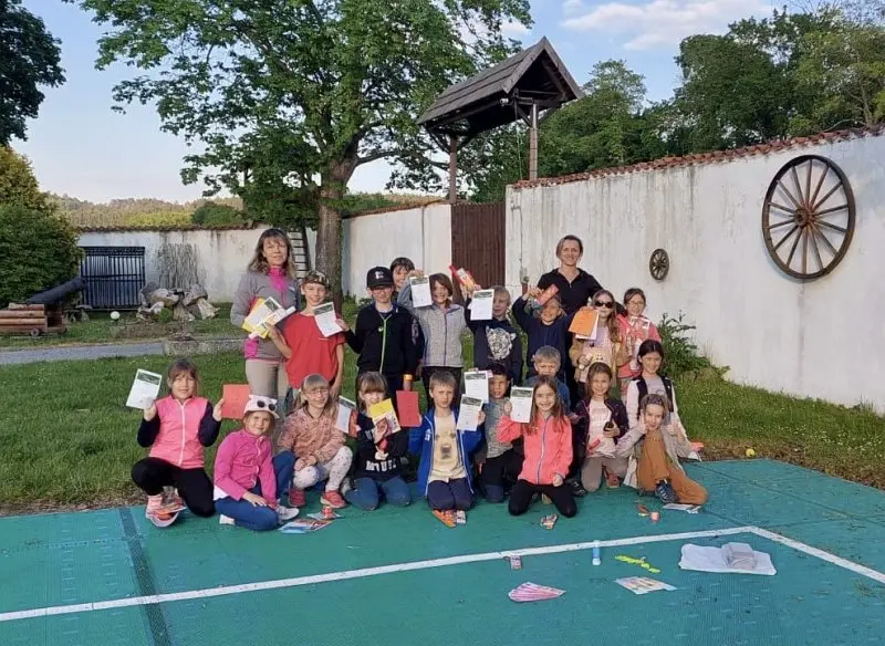 2.B si jako místo pro školu v přírodě vybrala bývalou tvrz Holešice u Orlické přehrady. Objekt, téměř na samotě, je ideálním místem pro poznávaní přírody. Břehy vodní nádrže Orlík, okolní lesy, louky a zdejší statek, nám poskytly mnoho možností k výuce prvouky, pracovních a výtvarných činností, ale i matematiky a češtiny. Pohybu byl dostatek venku a v nepřízni počasí byla k dispozici tělocvična. Jeden den děti strávily v zážitkovém a interaktivním parku Zeměráj, kde je opravdu nespočet možností vyžití. Celým pobytem nás provázel skřítek zdejší tvrze, pro kterého děti plnily úkoly a odměnou jim pak byla truhla s pokladem, kterou však děti musely najít ve skřítčím lese.