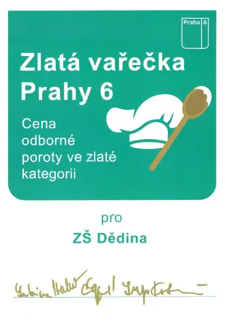 Naše školní jídelna se zapojila již potřetí do soutěže mezi školními jídelnami – o Zlatou vařečku. Soutěžilo se o nejchutnější a nejzdravější pokrm. Zapojeny byly téměř všechny mateřské školy a několik škol základních.