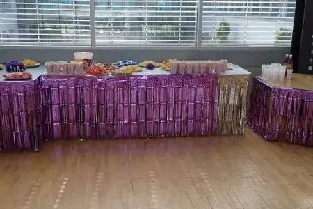 se začalo zdobit, stavět, foukat , připravovat catering a program. Výsledek ohromil všechny (viz fota) – mne, pana ředitele i všechny zúčastněné. A pak se odebrali všichni domů na přípravu vlastního image a splnění „dress kódu”. Kolem 16:30 jsem dorazil a postupně i ostatní . Bylo milé od žáků, že pozvali svého třídního p.uč. Babaču i bývalou třídní učitelku p.uč. Bomerovou, paní recepční Miladu, svoje nejbližší kamarády jako hosty a paní Bezpalcovou, která zajistila focení celé události.