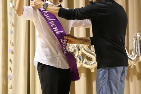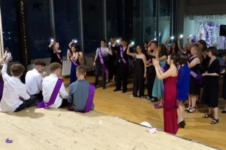 A pak…..? Pak to začalo ! Hudba, občerstvení, soutěže , hlasování a vyhlášení Krále a Královny Stužkování, tanec, karaoke a to vše za souběžného komentování „spíkra” Marka Hanzlíka 🙂 . Bylo úžasné a zároveň pro mne melancholické sledovat moje „zlatíčka” i žáky 9.B, jak se baví, jak si to užívají a jak z nich srší energie (budou ji ještě v životě potřebovat…). To vše narůstalo