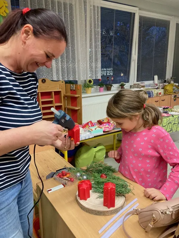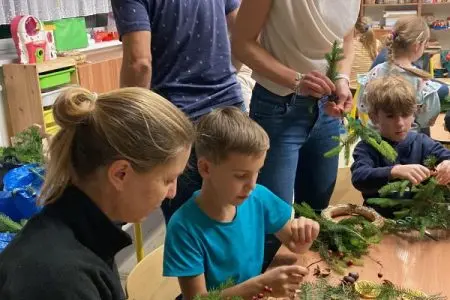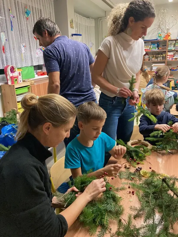 Na úterý 28. listopadu podvečer jsme se s rodiči 2.B domluvili na milém setkání u vánočního tvoření. S dětmi a rodiči jsme vyráběli adventní věnce a ochutnávali vánoční cukroví. Už se těšíme na Vánoce.