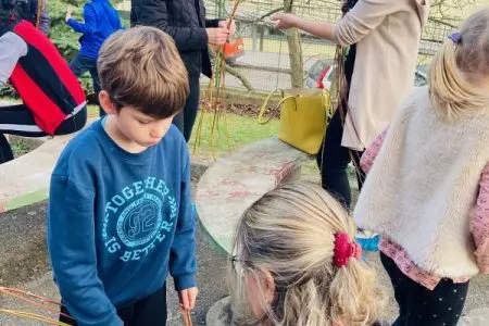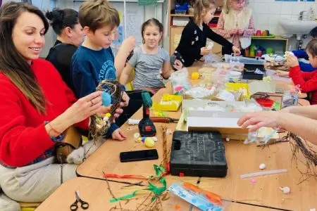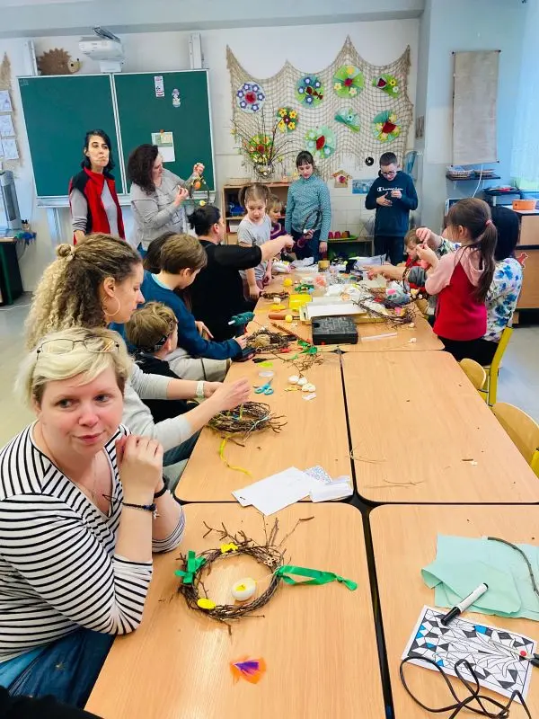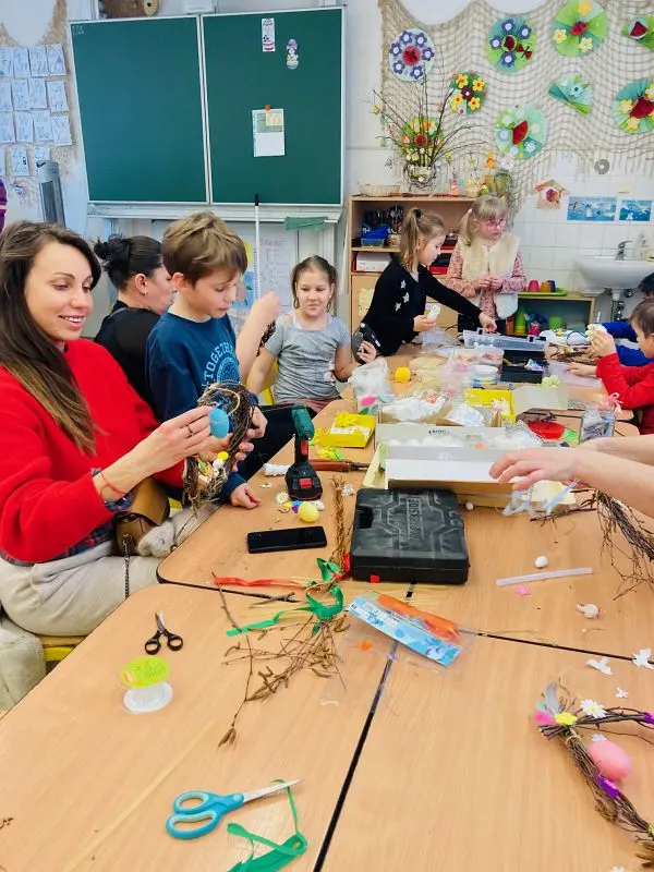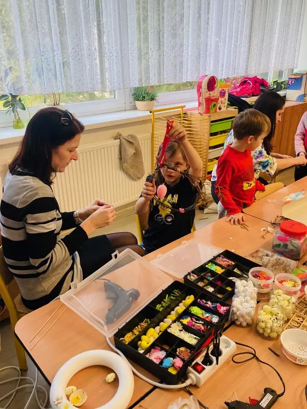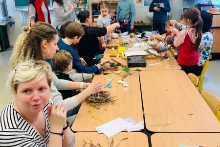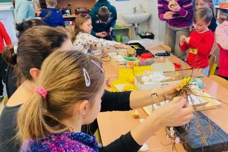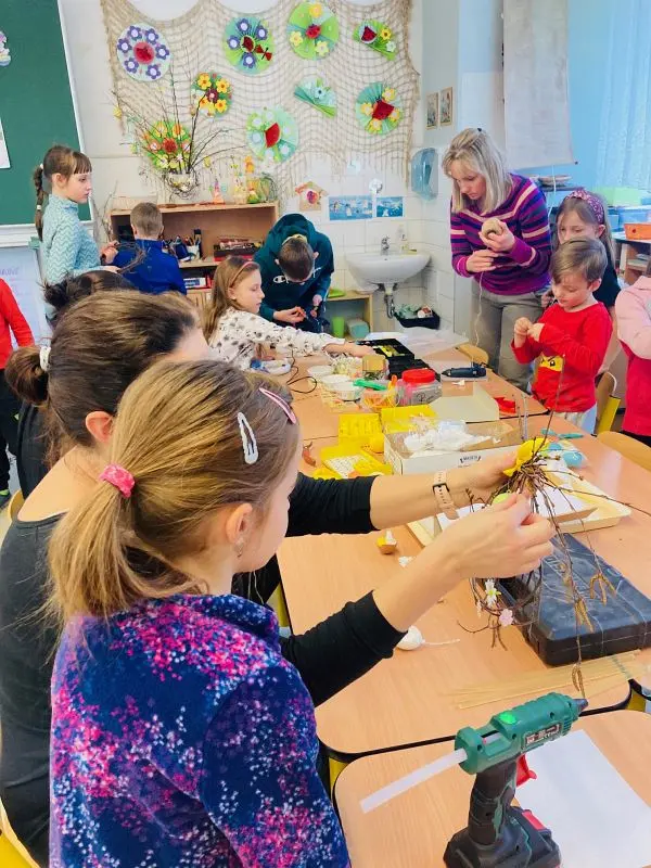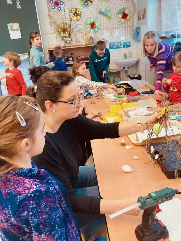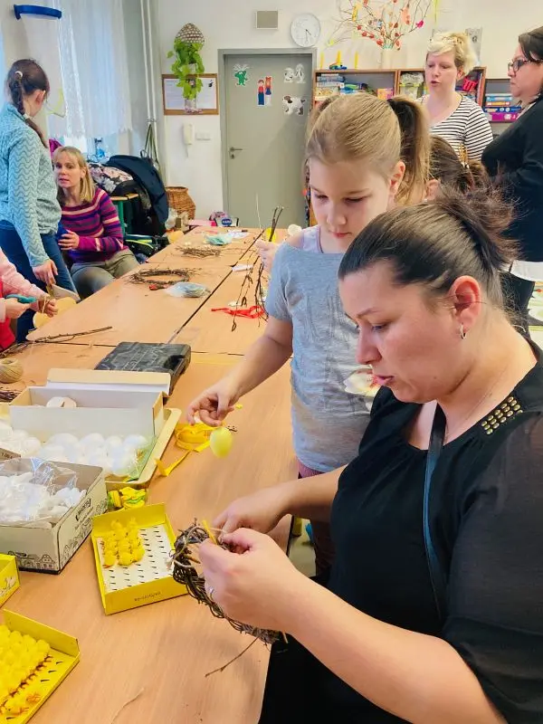 První jarní den jsme v 2.B pojali aktivně a spolu s rodiči jsme se sešli, abychom si upletli pomlázky a vyrobili velikonoční věnce a dekorace. Celé odpoledne se neslo v příjemné a veselé náladě a všichni