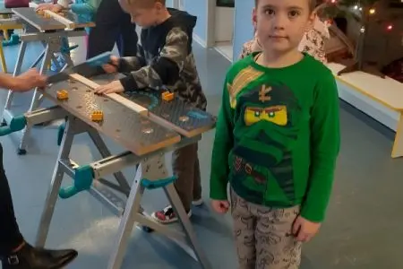 V pátek 16. 12. 2022 proběhl v družině workshop s Kutilem Juniorem. Děti se seznámily s prací se dřevem, vyrobily si přívěsek na krk. Práce se dřevem se jim moc líbila.
