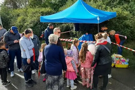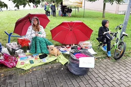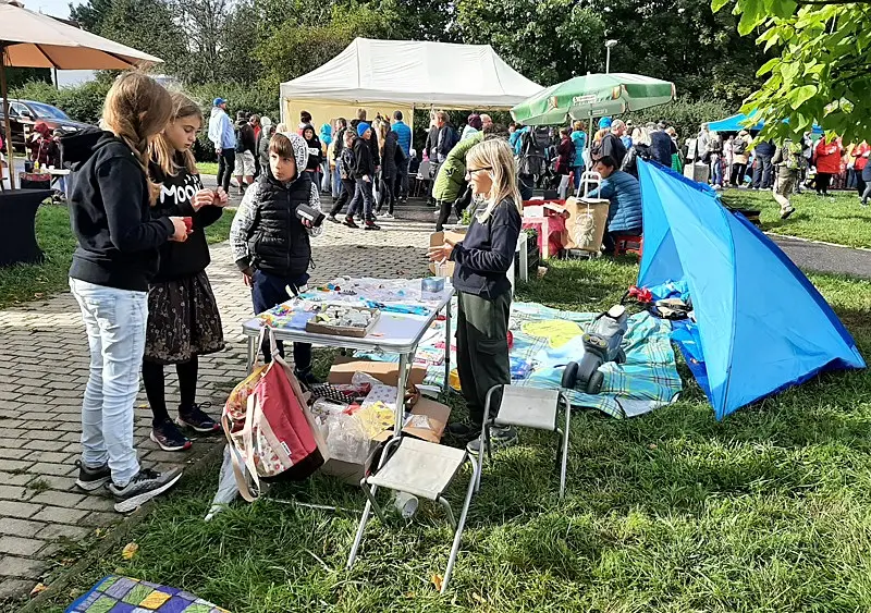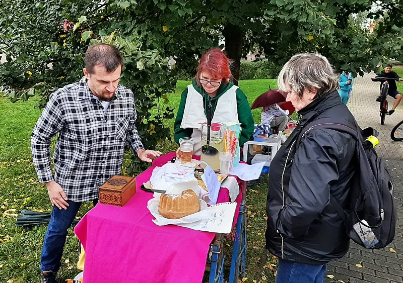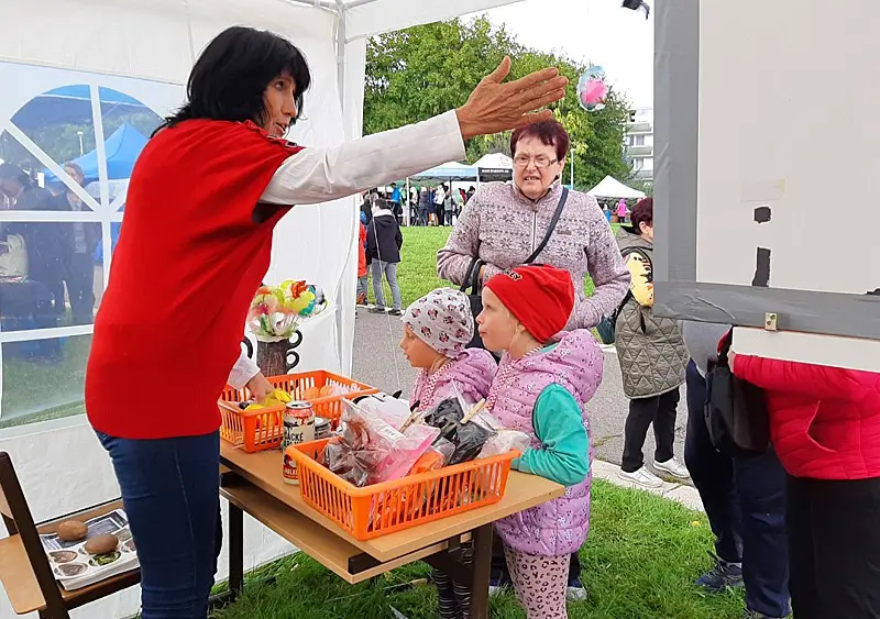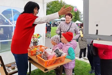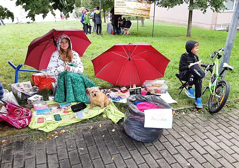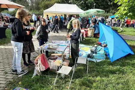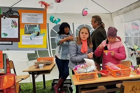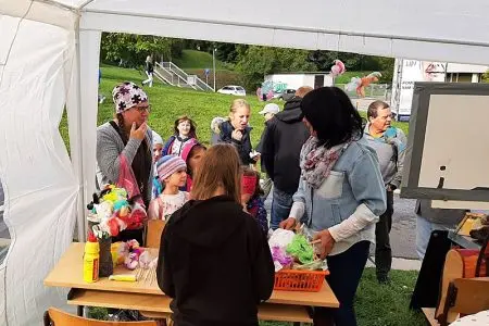 Foukal vítr a taky pršelo. Narychlo koupený stánek občas držel jen silou pana ředitele a pana školníka. V kontrastu s počasím nás opravdu neskutečně potěšila Vaše návštěva. Náš stánek byl totiž JEDINÝ CHARITATIVNÍ, tudíž NEVÝDĚLEČNÝ.