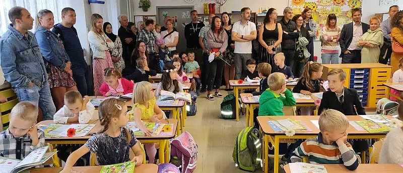 V letošním školním roce 2022/2023 se 1. září sešli před školou všichni prvňáčci, rodiče a paní učitelky prvních tříd.