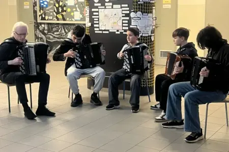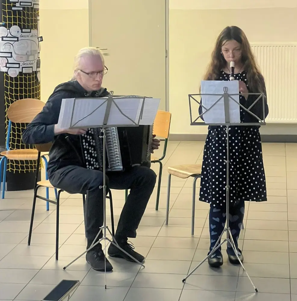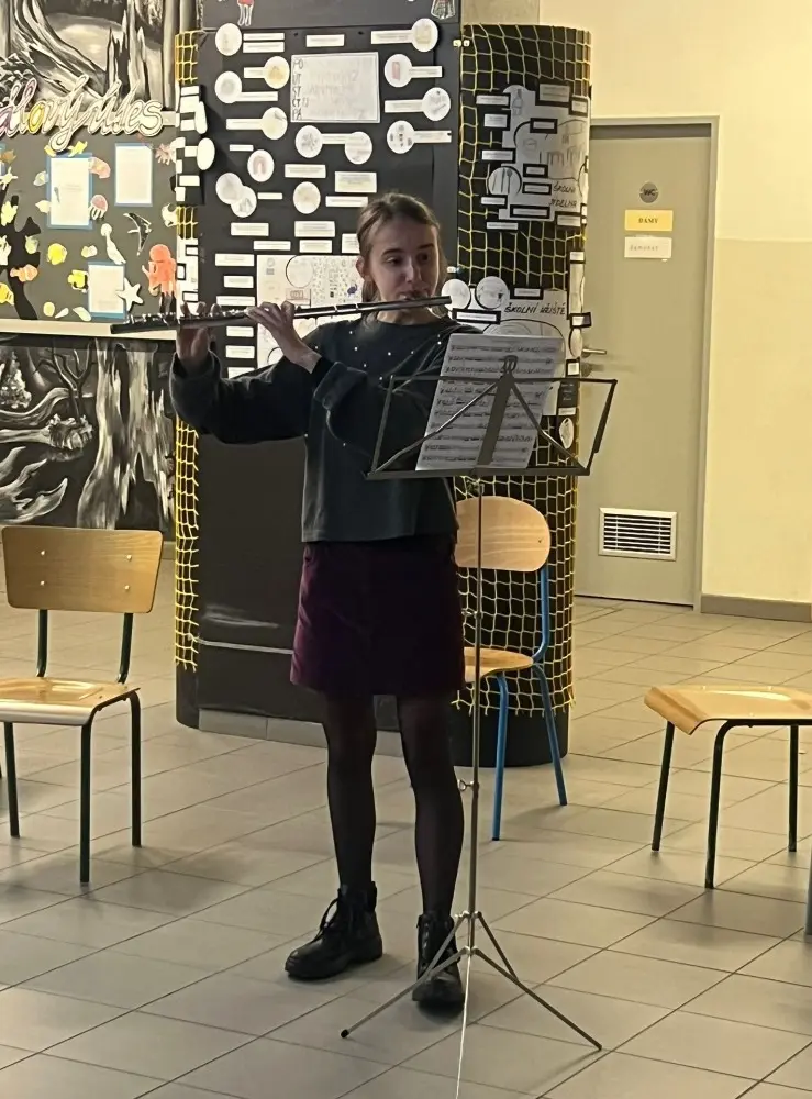 Den otevřených dveří byl zakončen hudebním vystoupením žáků ZUŠ Charlotty Masarykové. Program připravil pan učitel Boháč.